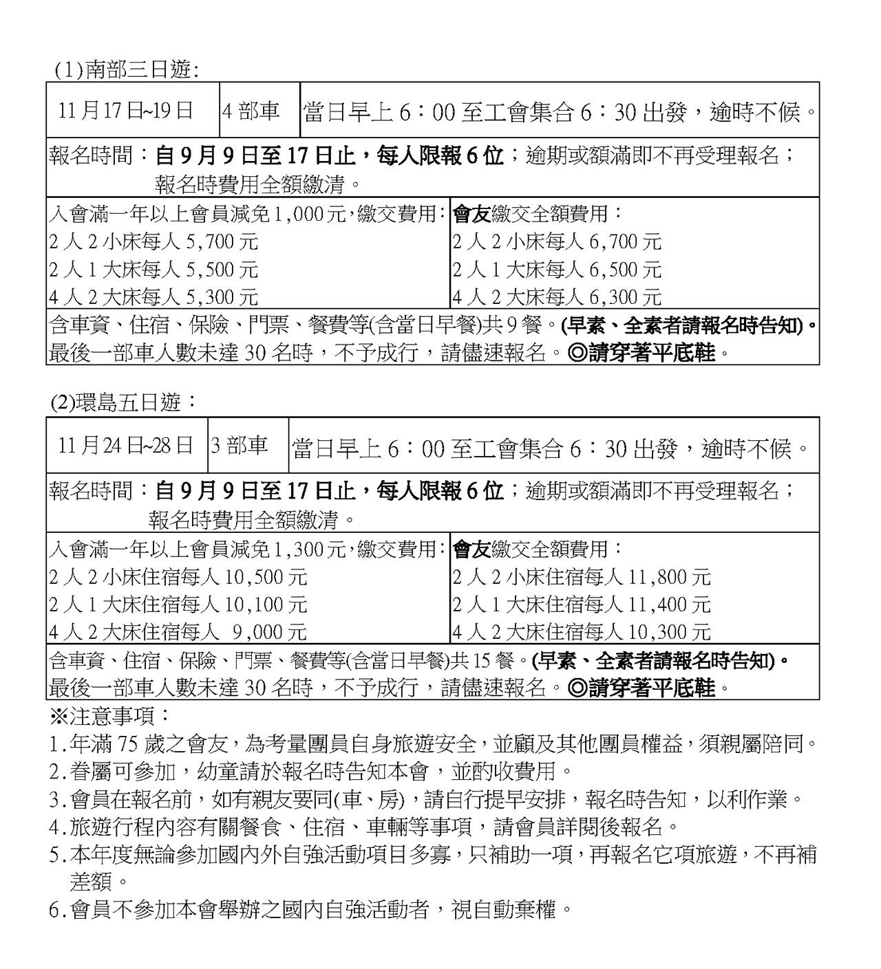 二、本會114年度辦理國內自強活動(南部三日及環島五日)。(如說明二及附件一)